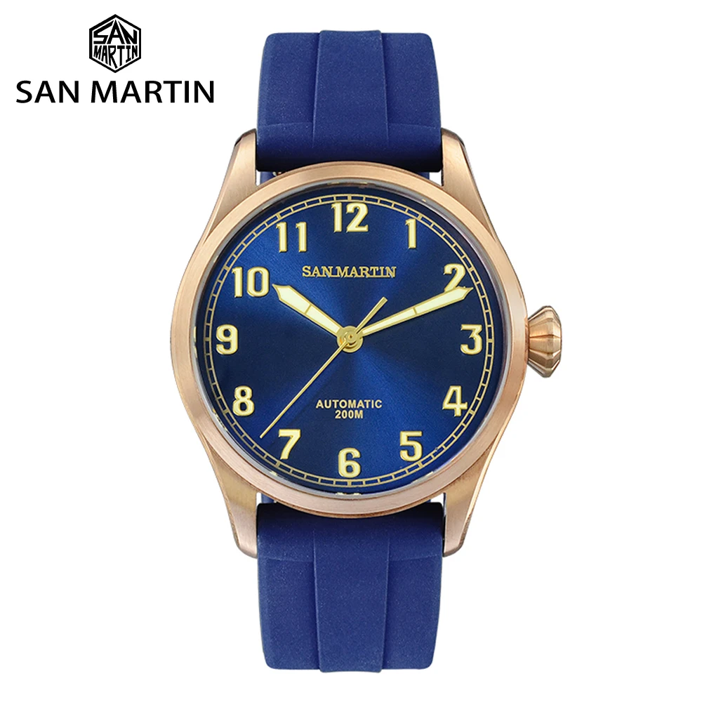 Good Price San Martin Diver Retro Tin Bronze Men Automatic Mechanical Watch Fluoro Rubber Sapphire See-through