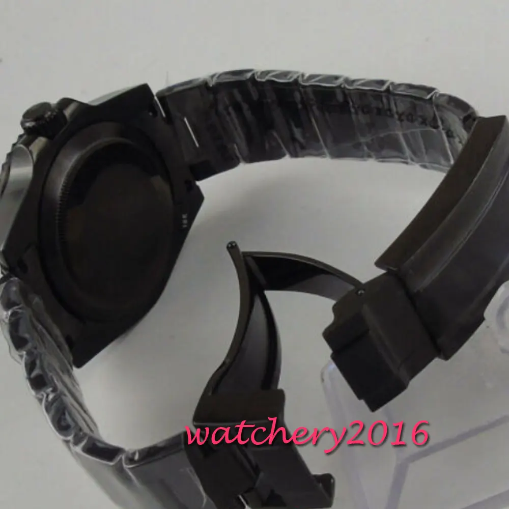 Clearance 40mm parnis black sterile dial PVD GMT date sapphire glass automatic mens watch