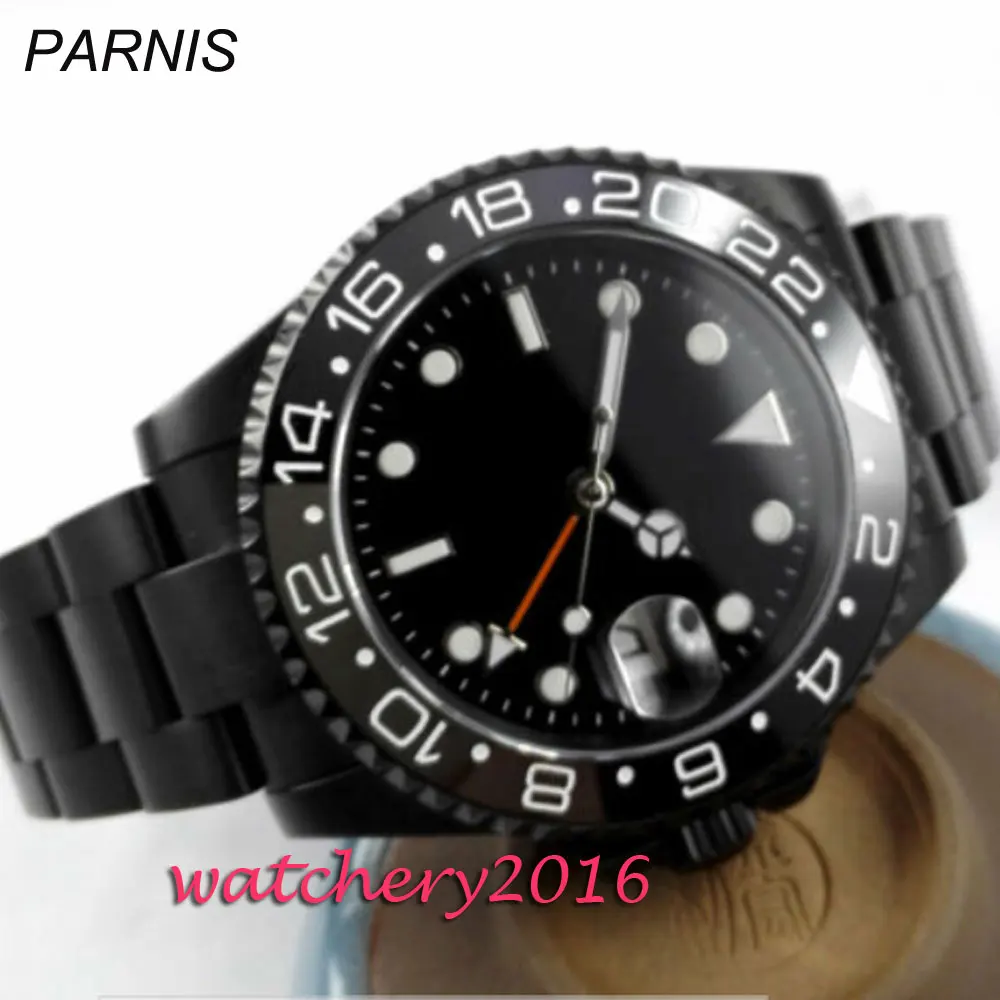 This product 40mm parnis black sterile dial PVD GMT date sapphire glass automatic mens watch is provided for you. Don't hesitate to buy this product.if you are interested in this product and want to buy, just click the buy button to get a discount
